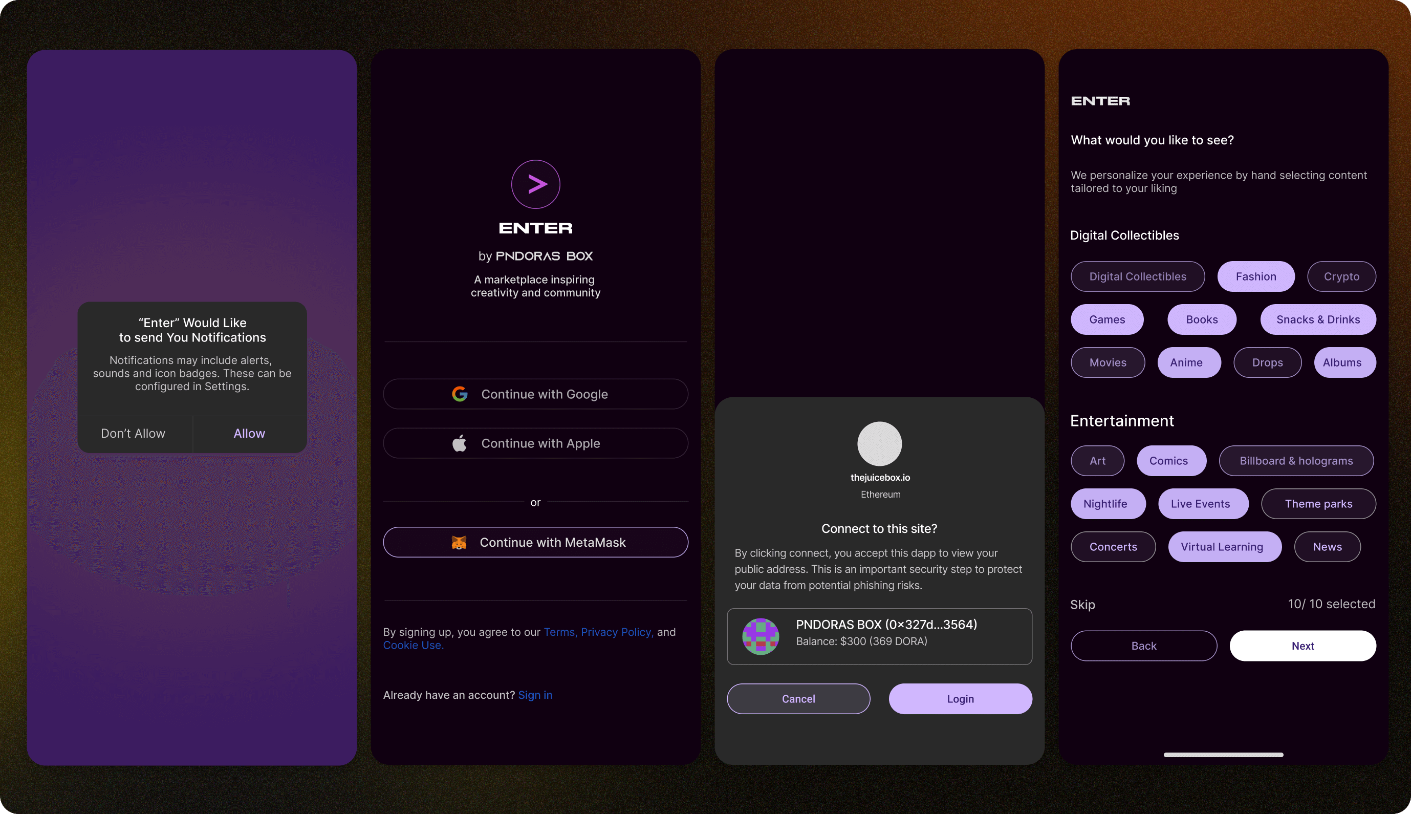 Enter is a next-gen marketplace app that combines digital ownership with seamless personalization, blending DeFi and virtual collectibles in a unique way.