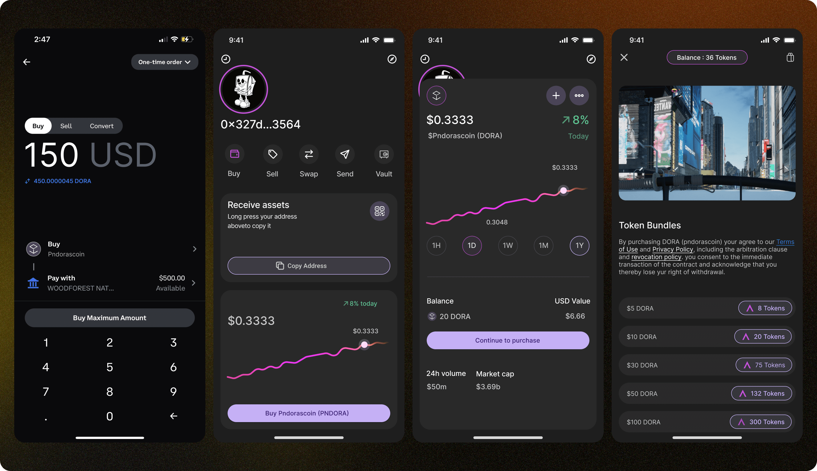 In the immersive financial experience, users seamlessly fund their wallets right within the platform. By connecting to Coinbase, they securely purchased tokens and instantly reloaded their wallets without leaving the experience. We had designed the process to feel intuitive and fluid, ensuring users managed their digital assets with confidence. The high-fidelity mockups illustrate how users moved from linking their account to making their first purchase, all within an immersive gamified environment.