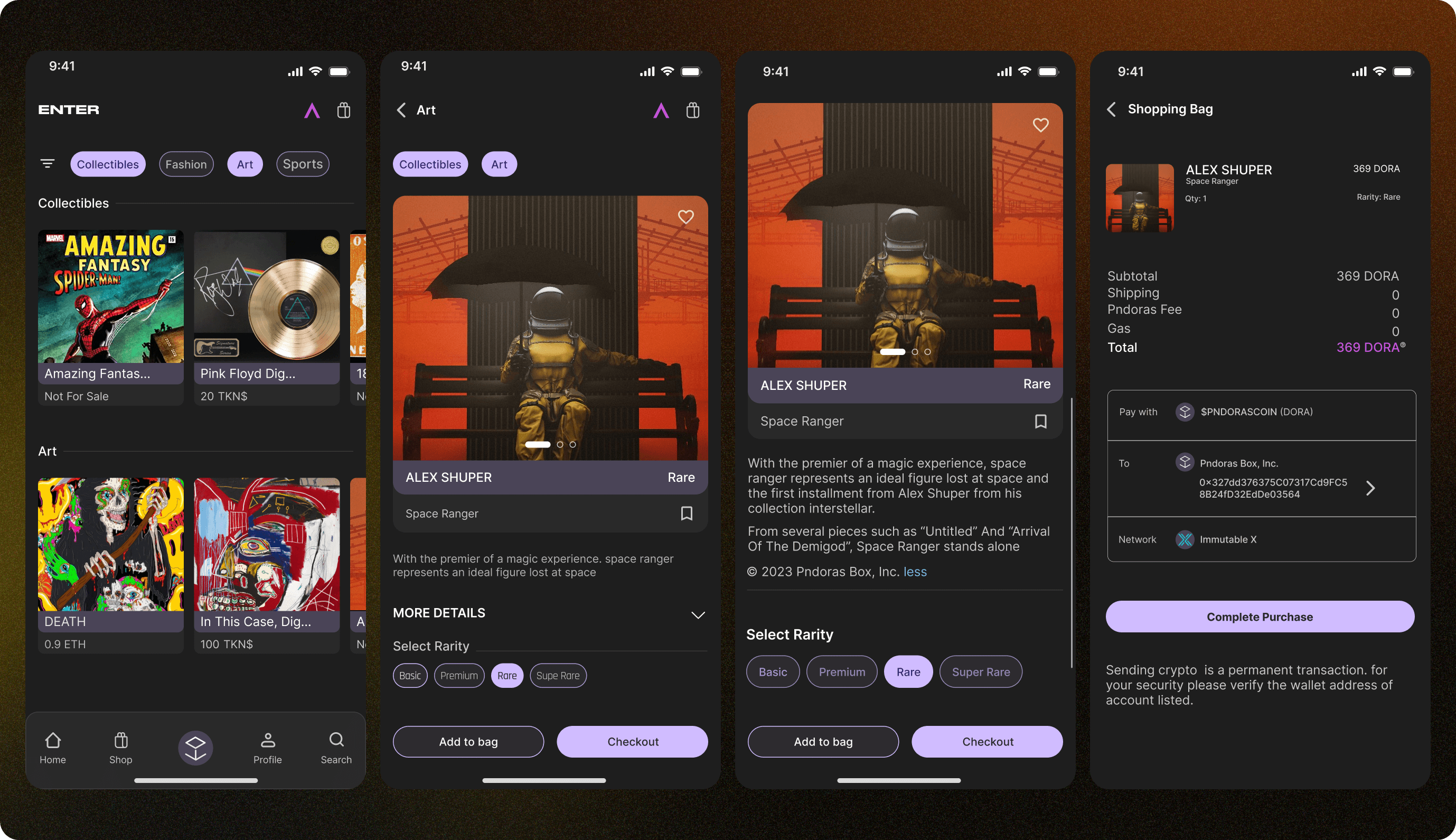 For the shopping experience, we aimed to make it easy for users to browse, compare, and buy digital collectibles. We provided clear details and interactive previews for each item, so users could feel confident and excited about what they were buying.